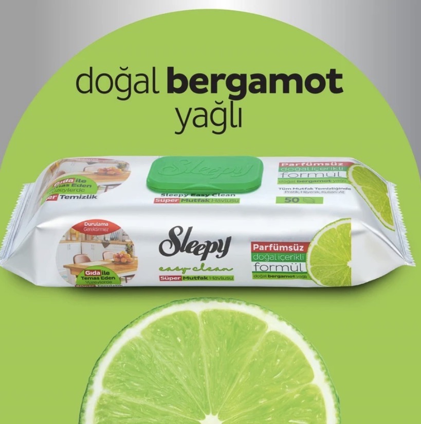 دستمال مرطوب چربی زدا اسلیپی مخصوص آشپزخانه و سطوح با رایحه لیمو 50 عددی